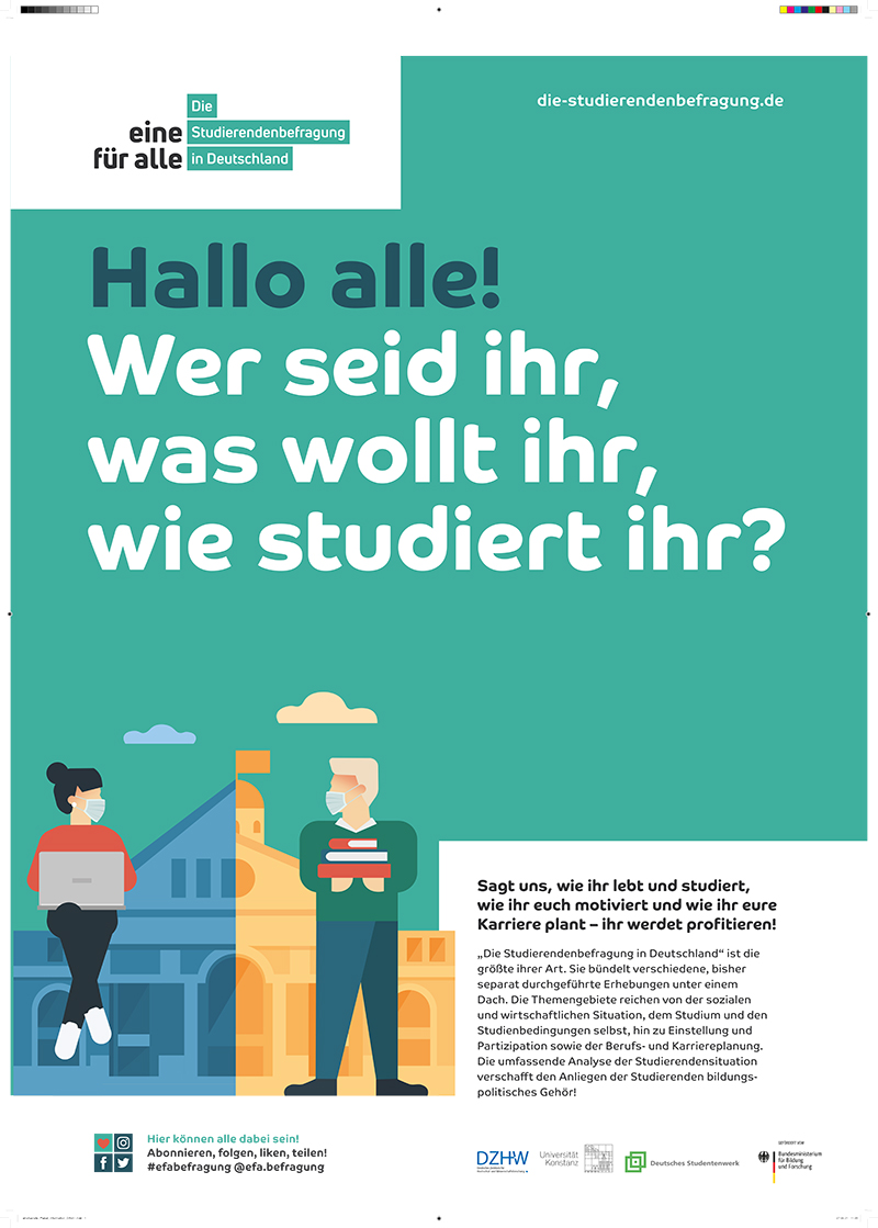 „Eine für alle: die Studierendenbefragung in Deutschland“ gibt ein umfassendes und differenziertes Bild über die Situation von Studierenden in Deutschland. Mit der neukonzipierten Studierendenbefragung werden mehrere über Jahrzehnte etablierte Studierenden-Befragungen in einer einzigen Studie zusammengeführt – eben „eine für alle“.