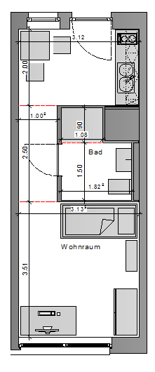 - Teilmöblierung: Bettgestell, Kleiderschrank, Schreibtisch mit Stuhl
